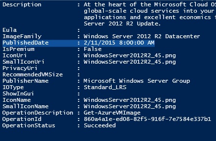 $BaseImage = (Get-AzureVMImage).where({$PSItem.Label -like "*Windows Server 2012 R2 Datacenter*" -and $PSItem.PublishedDate -eq "2/11/2015 8:00:00 AM" })